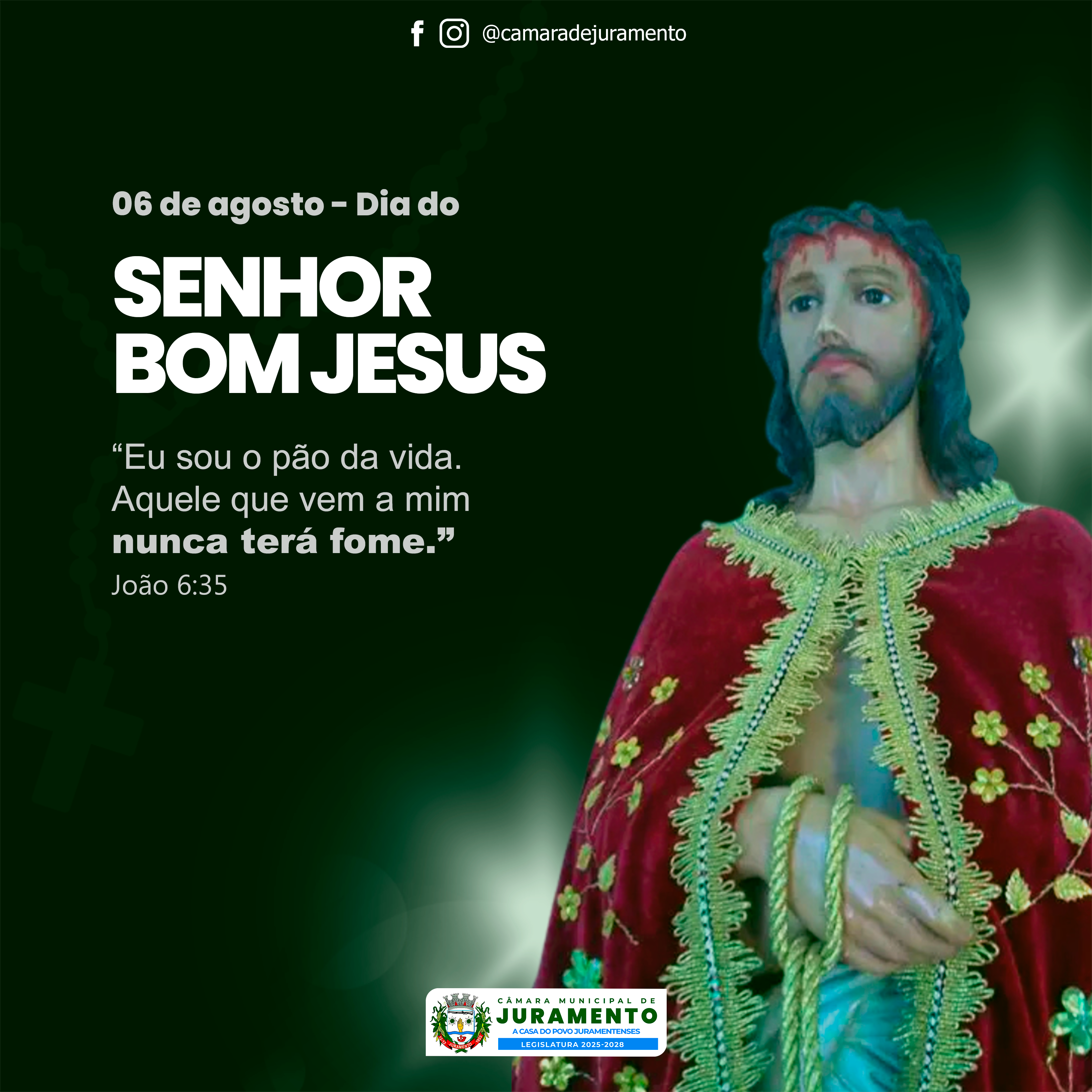 | 06/08/2025 | JURAMENTO CELEBRA SEU PADROEIRO, SENHOR BOM JESUS, EM FERIADO MUNICIPAL |